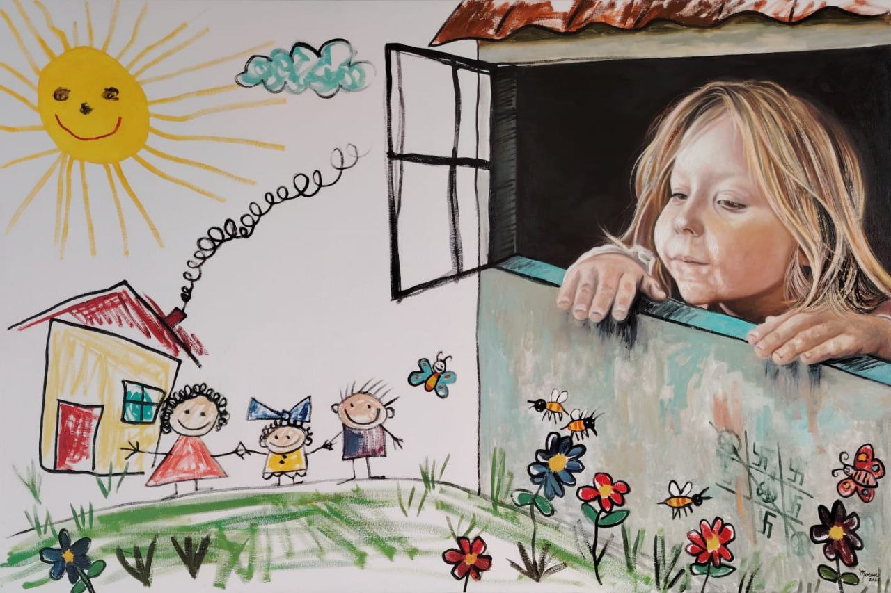 Мир глазами ребенка — всегда излучает счастье и радость, в детском воображении нет места войне и ненависти. Когда мы были детьми атрибутом нашего счастья всегда была семья и мир вокруг нас и наших близких, яркое солнце и домик с трубой, как же мало нужно чтобы быть счастливыми! Картина » Пусть всегда будет солнце! » прекрасно отображает это простое мирное счастье. Пусть всегда будет Cолнце. Пусть всегда будет Небо. Пусть всегда будет Мама. Пусть всегда буду Я!