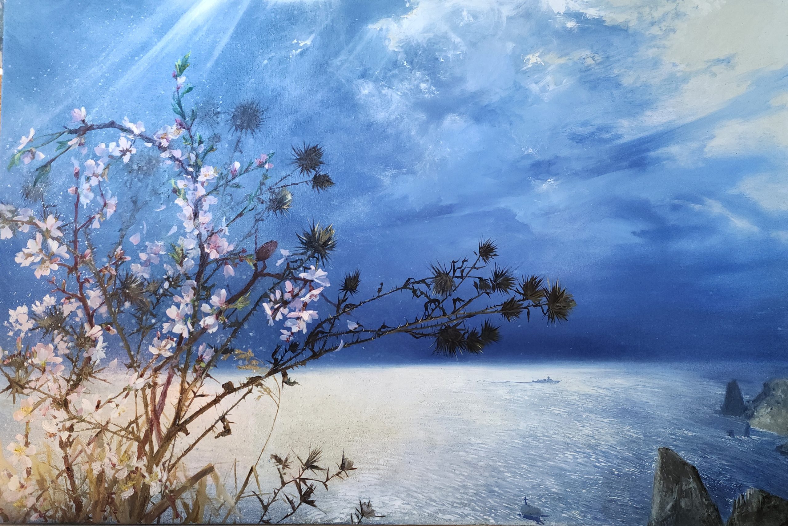 название — «Небо над черным морем» «Не спрашивай, по ком звонит колокол: он звонит по тебе» Война не проходит бесследно, в каждом из нас будут слышны ее отголоски — но готовы ли мы их услышать? Ради жизни на земле, нам нельзя забывать о великом подвиге наших предков. Цветущая ветка, тянется к свету — символ надежды на мир и новую жизнь.