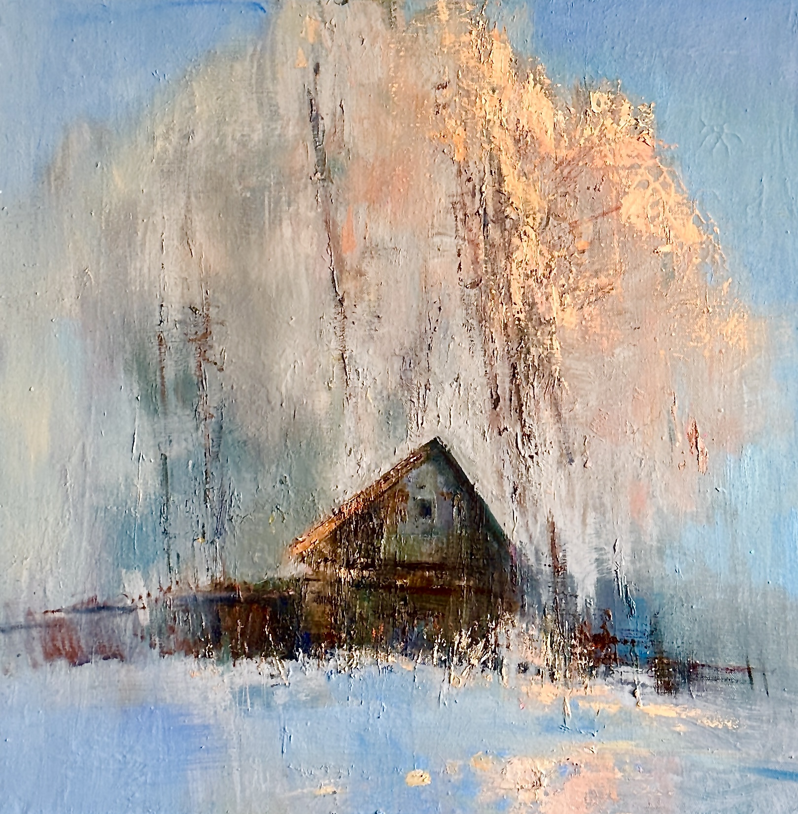 Снег да снег. Всю избу занесло. Снег белеет кругом по колено. Так морозно, светло и бело! Только чёрные, чёрные стены… («Снег да снег», А.Блок) Уютная избушка, утопающая в белоснежной пелене снега, как символ безопасности и тепла, которые так необходимы каждому человеку. Её деревянные стены, покрытые инеем, излучают атмосферу домашнего уюта, приглашая всех, кто ищет умиротворение, войти и насладиться теплом домашнего очага. Вокруг избушки раскинулся зимний лес, деревья которого, одетые в снежные шапки, стоят в полном молчании, как хранители мира. Их ветви, перегнутые под тяжестью снега, напоминают о том, как важно беречь природу и жить в согласии с ней. Картина приглашает зрителя задуматься о ценности мира и гармонии, о том, как важно сохранять тепло и доброту в наших сердцах. Она напоминает, что даже в зимнюю стужу мы можем создать уют и безопасность, если будем стремиться к миру и взаимопониманию.