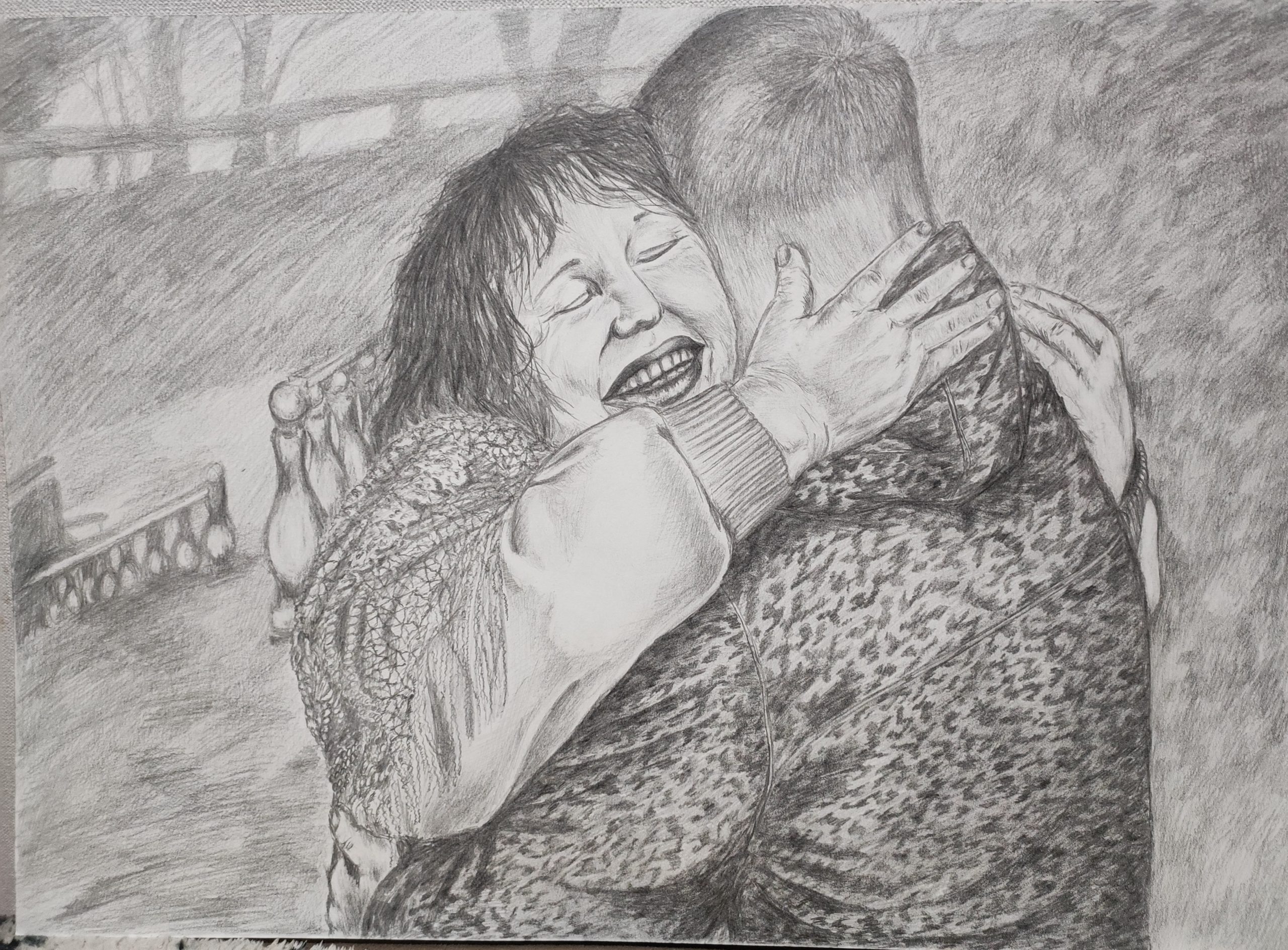 Крепкие объятия матери и сына ,вернувшегося с боевых действий.