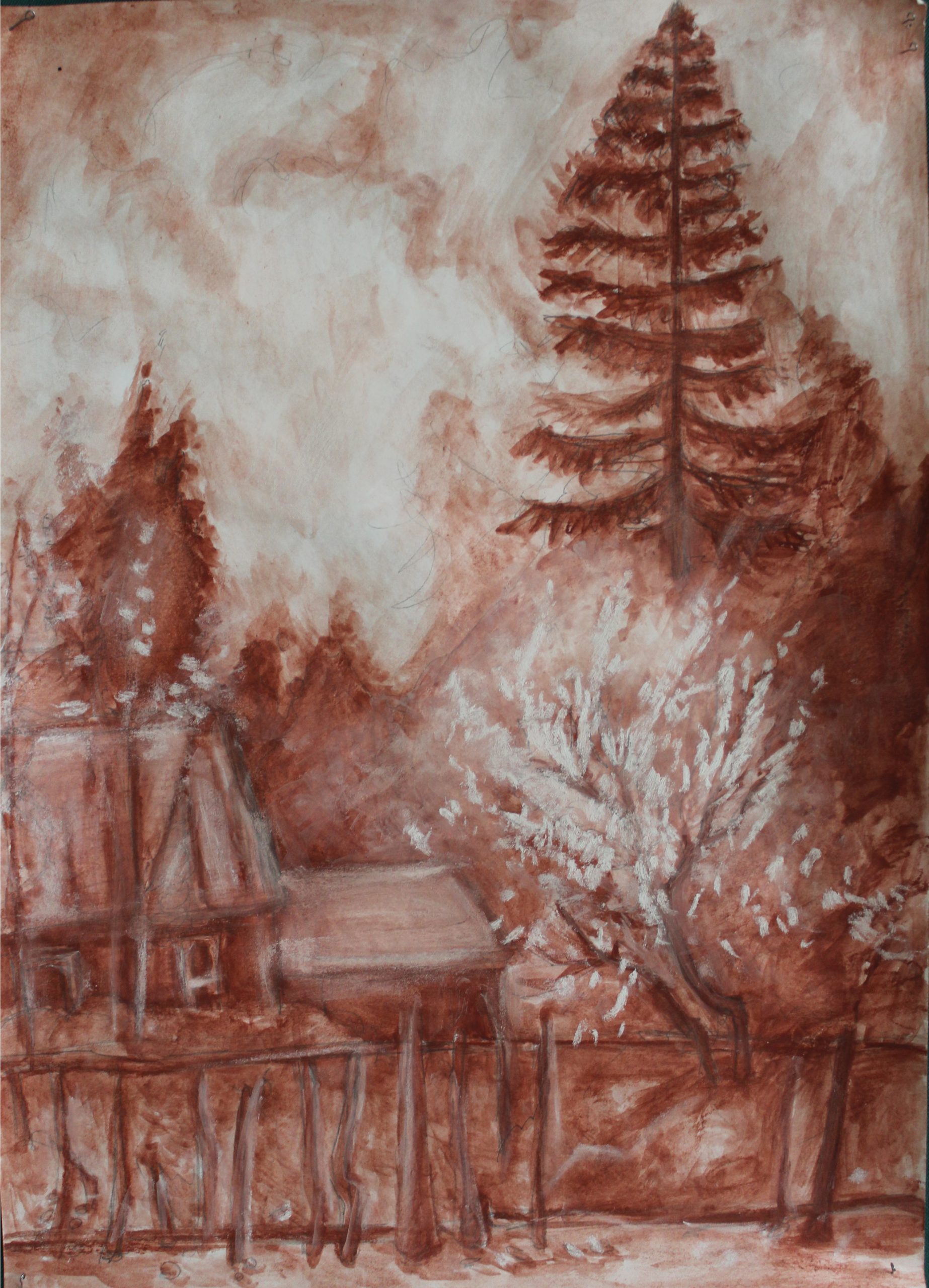 Пейзаж, Весна. Природа просыпается. Деревенский пейзаж, моя Родина. Цветет яблоня около дома, деревянный забор. Вот с чего начинается Родина.