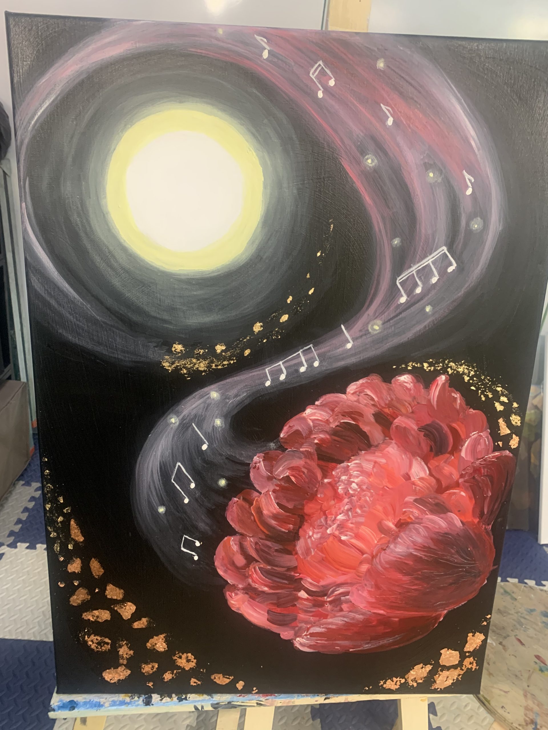 Мир-это согласие, дружба, вселенная, род человеческий, все люди, наша земля, единодушие. А поскольку моя работа носит название «Дыхание цветка», то я думаю, что именно красота , как говорил Ф.М.Достоевский, спасёт мир! Цветок-это музыка и поэзия, любовь и дети, жертвенность и красота! А Луна, невзирая на трудности, всё освещает вокруг себя.