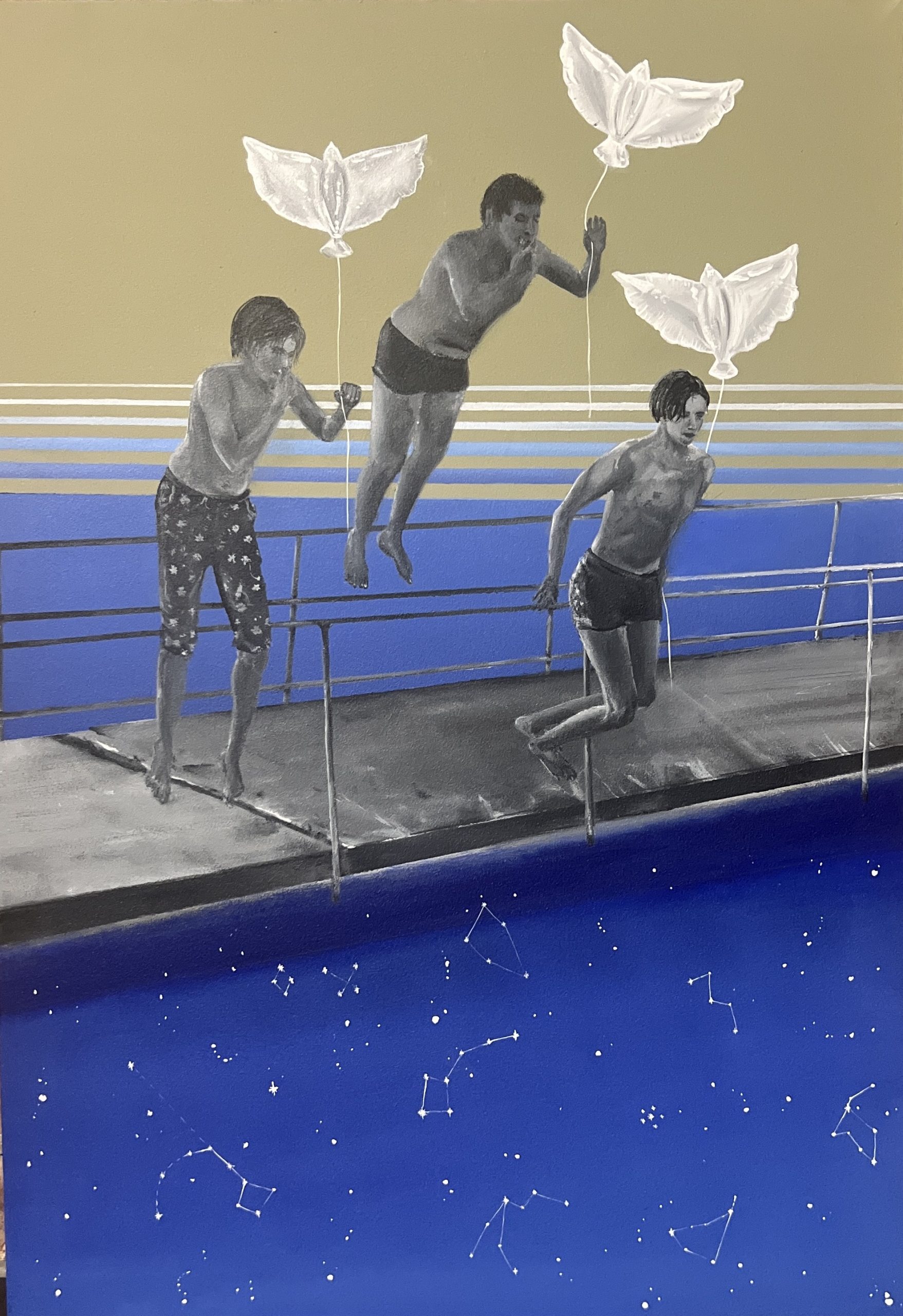 Серия работ « Ковер памяти» Акрил, холст, 70*100 см, 2025 Мой дед всегда говорил: «Просто будь счастливой. Все было ради этого.» Дед прошел всю войну, его давно уже нет. Но я помню каждый день. И передаю эту память моим детям. В детстве все легко и просто… Шутя перевернуть небо. Поменять небо и землю местами и нырять в космос! По шаткому мостику фантазий и желаний с разбегу плюхаться в звезды загаданных сокровенных мечт. Это весело. Это просто. А взрослым тяжело снова поверить. Взрослые все реже верят в чудеса. Но где-то глубоко в подсознании, словно на автомате, мы , зажмурившись от потока мыслей, судорожно шепчем самое сокровенное, если вдруг, в суете дел, замечаем падающую звезду. Но поменять местами небо и Землю уже@не можем-не помним КАК. И ведь знаем , что звезды не падают, что это совсем иное. Но все равно, все возвращается как в детстве. И мы загадываем , смеемся над собой за это, но верим, верим в загаданное и в то, что это исполнится. Верим молча. Серия работ про космос внутри) и про детские сны. И про взрослые надежды. То, что так отчаянно защищали наши деды-прадеды: наши мечты, их будущее-наше настоящее.