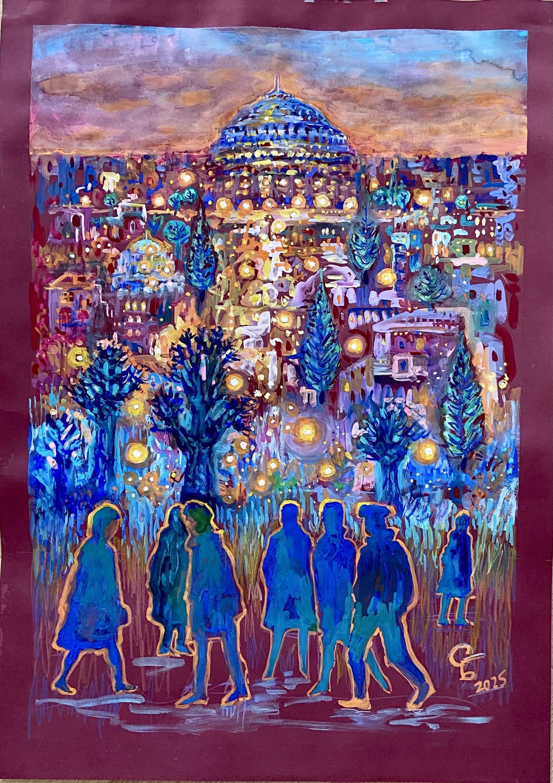 На картине изображён новосибирский театр оперы и балета, который было решено достроить в годы Великой Отечественной войны, несмотря ни на что, ни на какие трудности и лишения. Торжественное открытие состоялось 12 мая 1945 года оперой «Иван Сусанин». Всё так же он является достопримечательностью города и всё также спустя 80 лет молодежь-внуки и правнуки тех героев, тех строителей и инженеров, а может совсем и другие, не знающие истории этого монументального здания, гуляют под запахи и шелест яблонь и сирень, окружающих театр. Низкий поклон тем героям, на долю которых выпало отстаивать родные города и деревни, работать в тылу, вести подпольную деятельность для нашего прекрасного светлого времени.