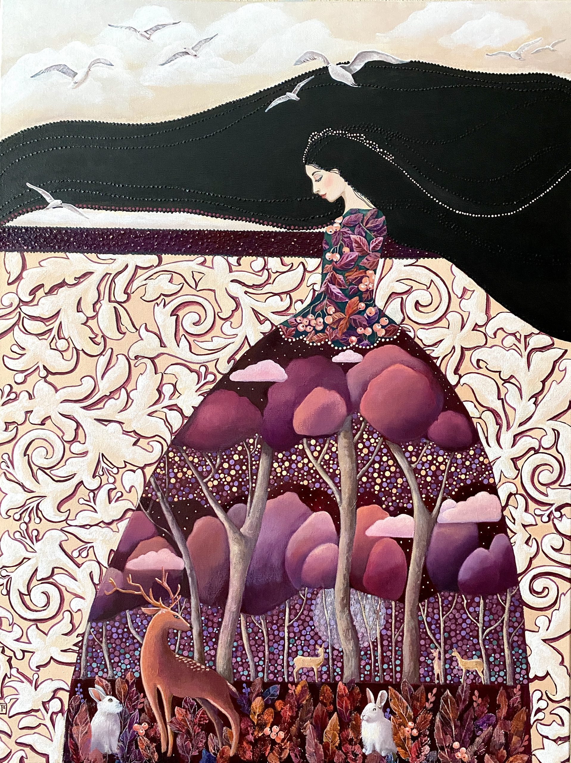 Картина «Вольный ветер» — это про свободу и про мир, который наполнен новыми всходами, пением птиц и их полетом в высоком небе, цветением свободной воли и яркими узорами жизни, где любовь и доброта вплетаются в каждый завиток следующего дня, а отношения преисполнены теплотой и дружбой и в этом большом многообразном мире, каждый может найти свое место и стать его украшением