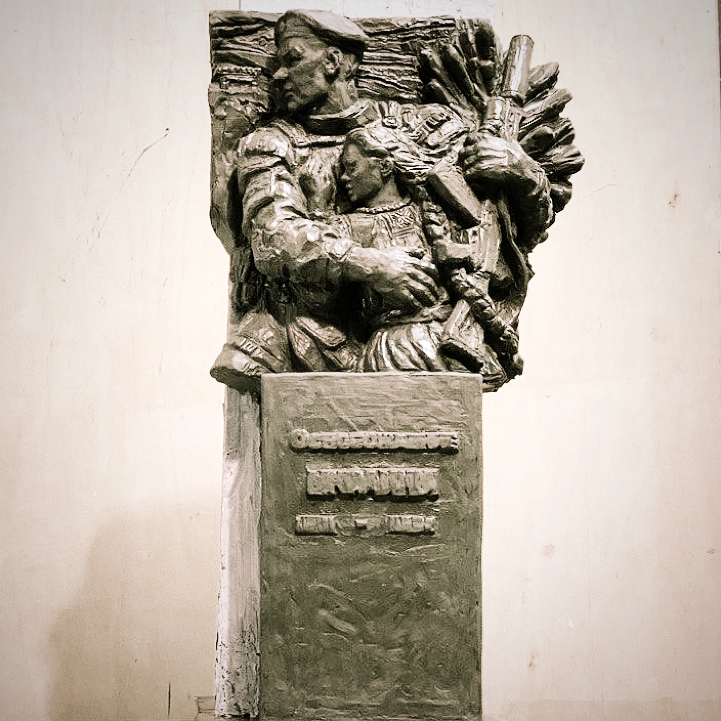— Экиз монумента Воину-Защитнику «Щит человечности» изображает воина, который, не раздумывая, закрывает собой девочку от взрыва. Композиция передаёт хрупкость мирной жизни перед лицом войны и бесстрашие тех, кто встаёт на её защиту. Воин становится не просто защитником, а символом мужества и человечности в самые тёмные времена.